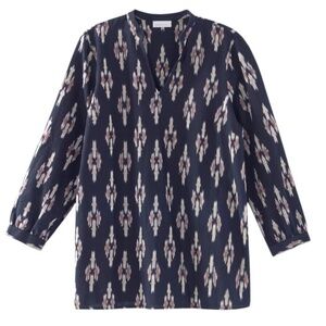 Exclusively part of our limited-edition Pure Jill Elements Collection. The effortless A-line top that's soft to the touch and easy to style. Also, the genuine ikat print adds an artisanal flair to your outfit. Shirring at the cuffs.