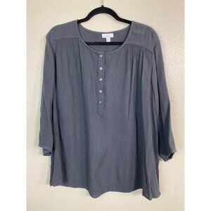 J. Jill Pure Gray 3/4 Sleeve Tunic Top Women size XL Lagenlook Mother of pearls