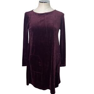 J. Jill Pure Jill Burgundy Velour Long Sleeve A-Line Shift Mini Dress Size XS