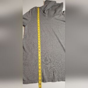 Soft long sleeve gray sweater with cowl neckline.