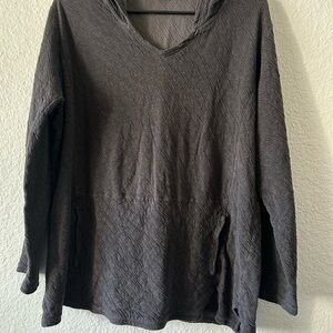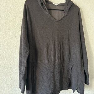 J Jill Pure Jill Cotton Ribbed Dark Gray Hooded Pullover M Cozy Coastal Grandma
