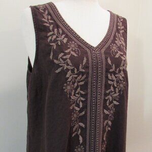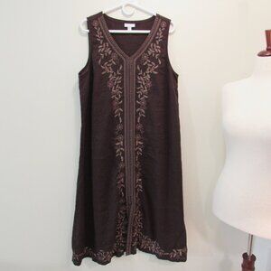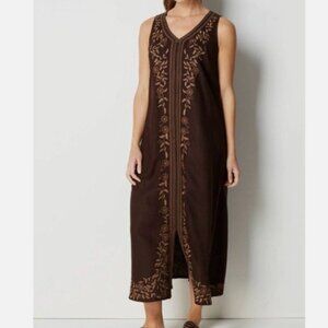 J Jill Pure Jill Dark Brown Linen Embroidered Maxi Large Petite