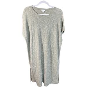 J. Jill Pure Jill Dolan Short Sleeve Knit Dress Heathered Green Cotton Blend M Minimalist Lagenlook Capsule Wardrobe Boxy