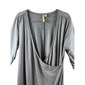 J. Jill Pure Jill Faux Wrap V-Neck Jersey Shift Dress Large Gray Modal Stretch