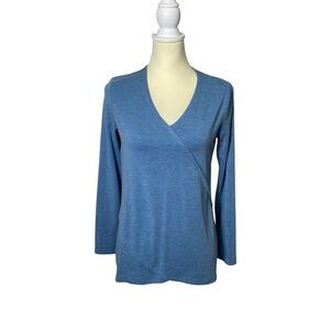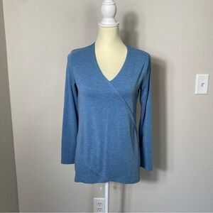 J. Jill Pure Jill Fit Tencel Faux Wrap Long Sleeve Blue Top Women's Size XS