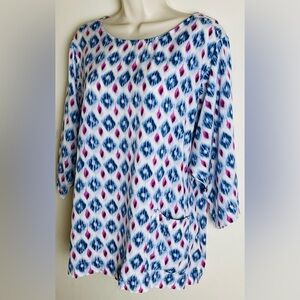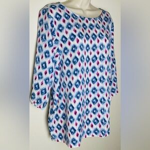J Jill Pure Jill Geo Ikat Print Shirt Size L Round neck 1/2 Sleeve Tencel
