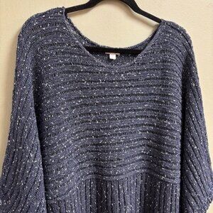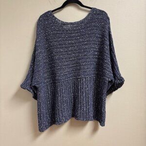 J Jill Pure Jill Kimono Top Size L Missy Blue Lagenlook Flowy Stretch Loose Knit