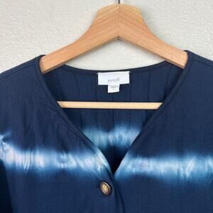 Pure Jill Blue Tie Dye Stripe Quilted Long Sleeve Button Front Jacket - Size Large