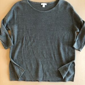 J. Jill Pure Jill gray sweater top. 3/4 sleeves. Notched sides. Roomy fit. Linen blend. Micro ribbed. So soft!