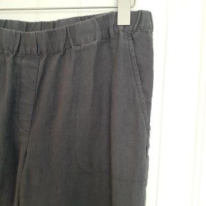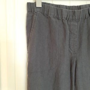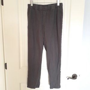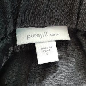 Very good pre-owned condition. J. Jill Pure Jill Linen Pull-On Pant with Roll Tab Leg. Size: Small. 100% linen. Machine wash. Color: Gray. Pull on style, hand pockets, and roll tabs at hems. Legs do taper a bit down to the hem.