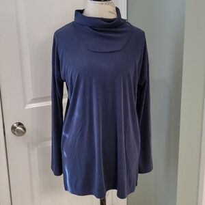 J. Jill Pure Jill Navy Blue Ribed Long-Sleeve Cowl Neck Top - Size Small