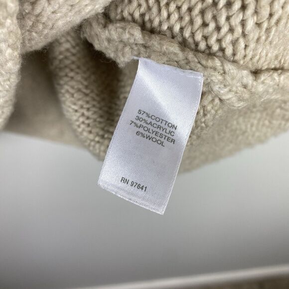 J Jill Pure Jill Pullover Sweater XS Tan Mock Neck Cable Knit Old Money Preppy
