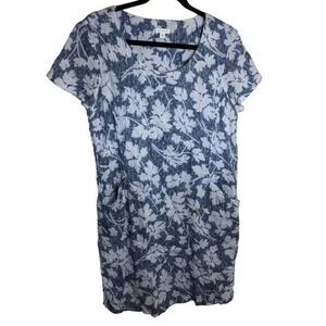 J. Jill Pure Jill Shirt Dress Short Sleeve Linen Floral Crinkle Pockets Medium