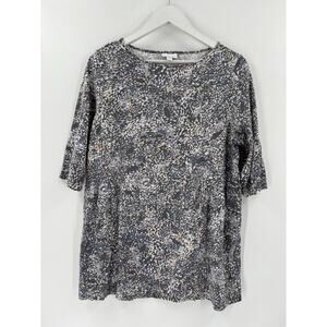 J. Jill Pure Jill Shirt Womens Large Gray Spotted Short Sleeves Relaxed Stretchy