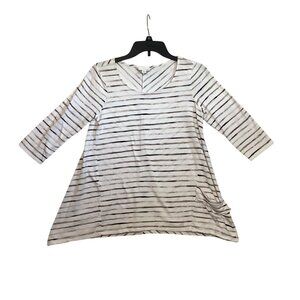 J. Jill Pure Jill Striped Tunic Blouse Women XS 3/4 Sleeve Pocket Cotton Blend