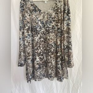 J Jill Pure Jill Sweater Multicolor Woodland Velour Fleece Pullover Size Large