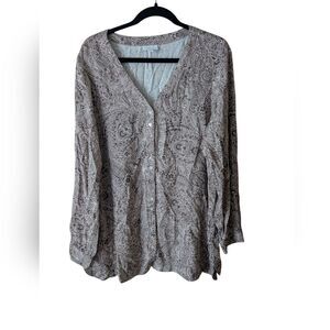J. Jill Pure Jill Tan Paisley Double Button Tunic Blouse Button Down Size Large