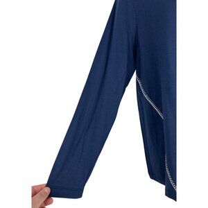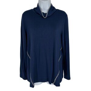 This versatile cowl neck top features soft fleece fabric with decorative stitching for added style. Designed for comfort, it provides a polished, relaxed fit.