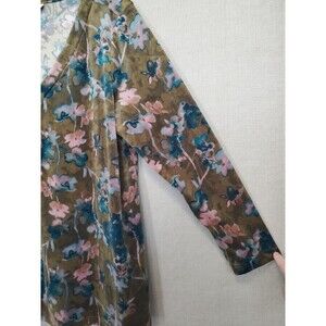J Jill Pure Jill Velour Brown Floral V-Neck Long Sleeve Tunic Size Large