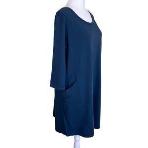 J. Jill Pure Jill Womens Scoop Neck A-Line Dress Pima Cotton Ocean Blue Sz L