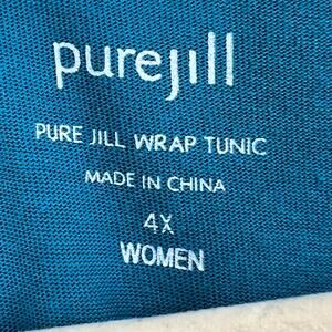 J Jill Pure Jill Tunic Top Womens Size 4X Blue Wrap Scoop Neck 3/4 Sleeve Casual