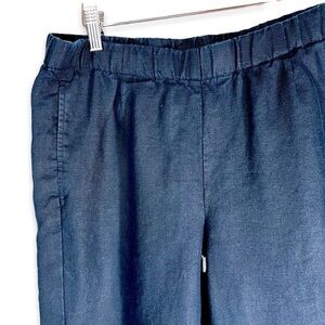 J Jill Pure Linen Pull On Cropped Linen Pants, True Navy, Size Small