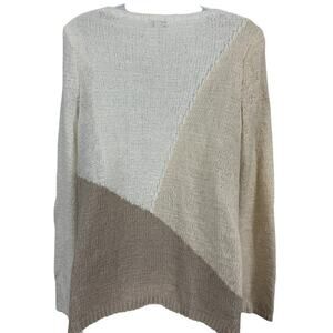J Jill Pure Neutral White Beige Open Knit Long Sleeve Pullover Sweater sz P S