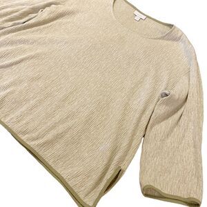 Pure Jill by J. Jill Sage & Cream Blouse - Linen Blend Soft Textured Fabric - Scoop Neck - 3/4 sleeves - Stretchy comfort