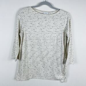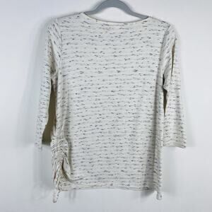 J. Jill Pure Size Small Space Dye 3/4 Sleeve Side Ruched Top Cream Cotton Modal