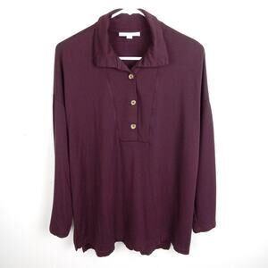 J Jill Pure Women's Fleece Tunic Top M Burgundy Long Sleeve Soft Touch Stretch