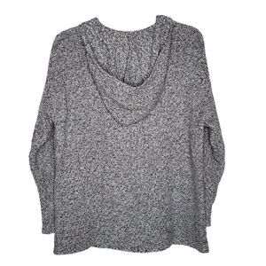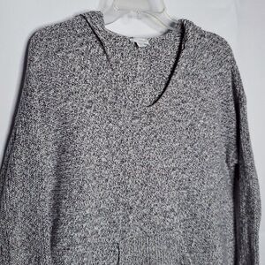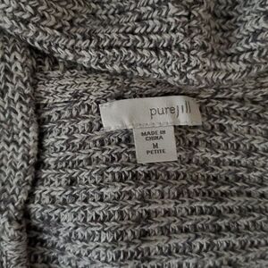 J Jill Pure Jill Knit Hoodie Sweater MP M Petite Marled Gray Pullover Preppy