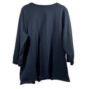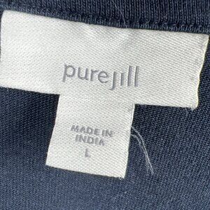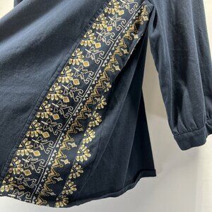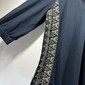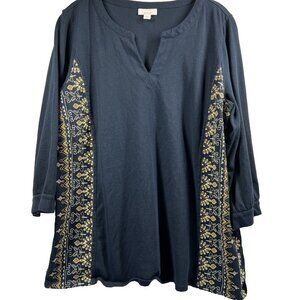 J Jill PureJill Women's Top Size Large Blue Gold Embroidered 3/4 Sleeve Cotton