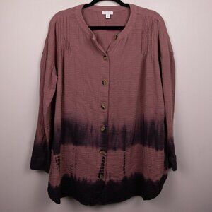 J. Jill PureJill purple tie dye gauzy button down tunic shirt-L