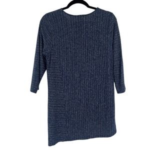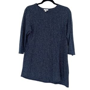 J. Jill Purejill Asymmetrical Striped Textured Hemp Blue Tunic Top Small