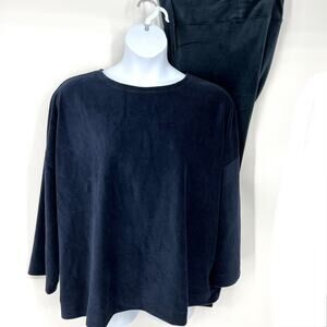 J. Jill Purejill Blue Velour Velvet Cotton Blend Stretch Top and Pants Size 2X