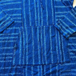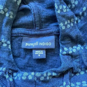 J. Jill Purejill Indigo Blue Dot Striped Cotton Drawstring Tunic Hoodie Sz S