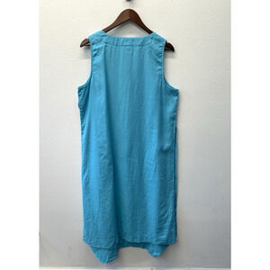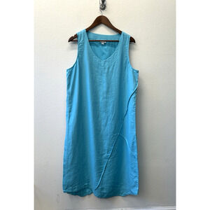 J. Jill Purejill Linen Maxi Wrap Dress Womens Size L Teal Blue Lagenlook Beachy
