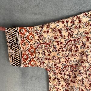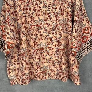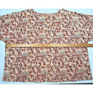 J Jill Purejill Top Womens Extra Large Tan Floral Organic Cotton Oversized Boho