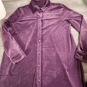 J Jill Purple Velvet Tunic Wearever Collection S Soft Back Shirred Back Button