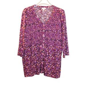 J. Jill Purple and Orange Blouse Vibrant Top Women's Medium