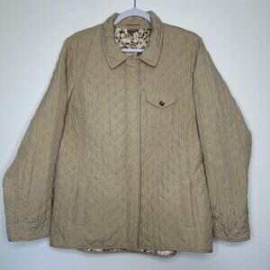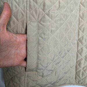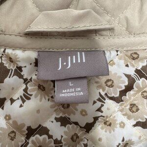 J Jill Quilted Full Zip Jacket Size L Tan Pockets Fall Outdoor Classic