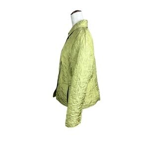 J. Jill Quilted Green 100% Silk Floral Embroidery Button Jacket Size Medium