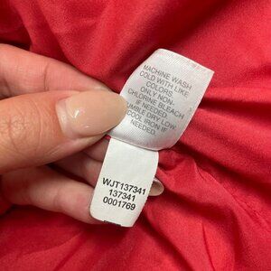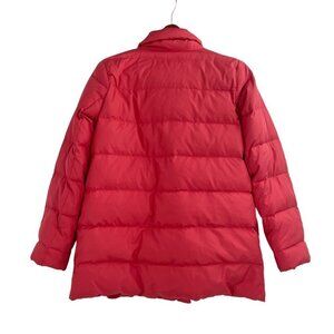 This down filled winter jacket from J. Jill is in a bright coral red with snap buttons up the front and pockets to keep your hands warm. There are some small discolorations as shown in the pictures. It is in otherwise GUC. Measurements are shown in the pictures. Bundle with other items from my closet for the best deal!