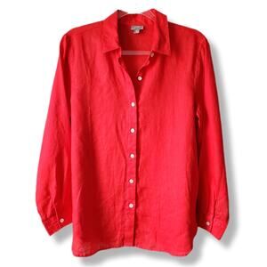 J Jill Red Linen Button Shirt XS Classic Natural Career Minimal Modern Coastal