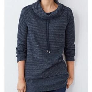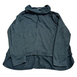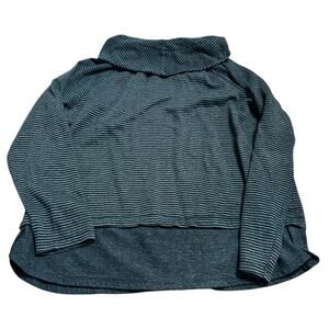 J Jill Relaxed Waffle-Knit Cowl-Neck Pullover Top Grey Blue Stripes Size Large