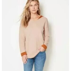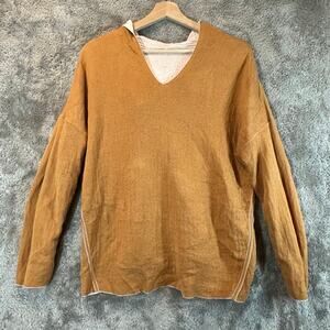 J Jill Reversible Hoodie Top Gauzey Textured Knit Large Petite LP PL Blush Pink Mustard Brown L Large Petite LP PL Cotton Viscose Rayon Nylon Blend
