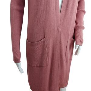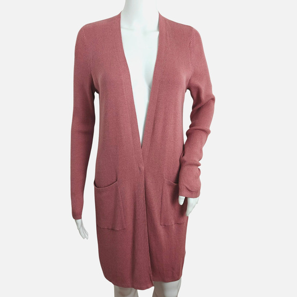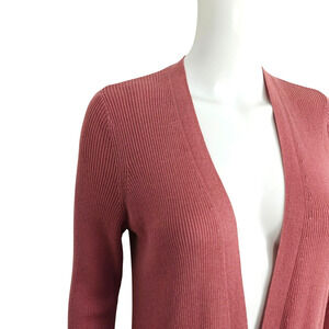 J Jill Rib Knit Open Cardigan Sweater Size XS Dusty Rose Pockets Longline NWT