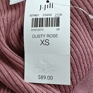New with tag J. Jill rib knit open front cardigan sweater in women's size XS. Dusty Rose. Long sleeves. Hip pockets. Side slits. Lightweight cotton/rayon knit. Longline silhouette.