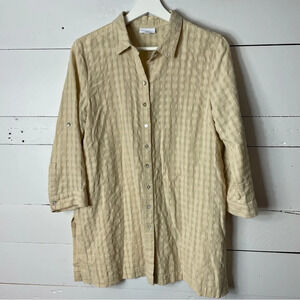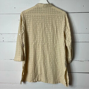 J Jill Ribbed Beige Boho Sand Dune Side Slit 3/4 Sleeve Tunic Blouse Size Medium