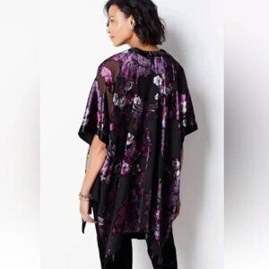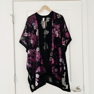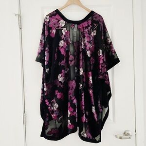J. Jill Ruana Velvet Burnout Cardigan One Size Kimono Duster Purple Floral
